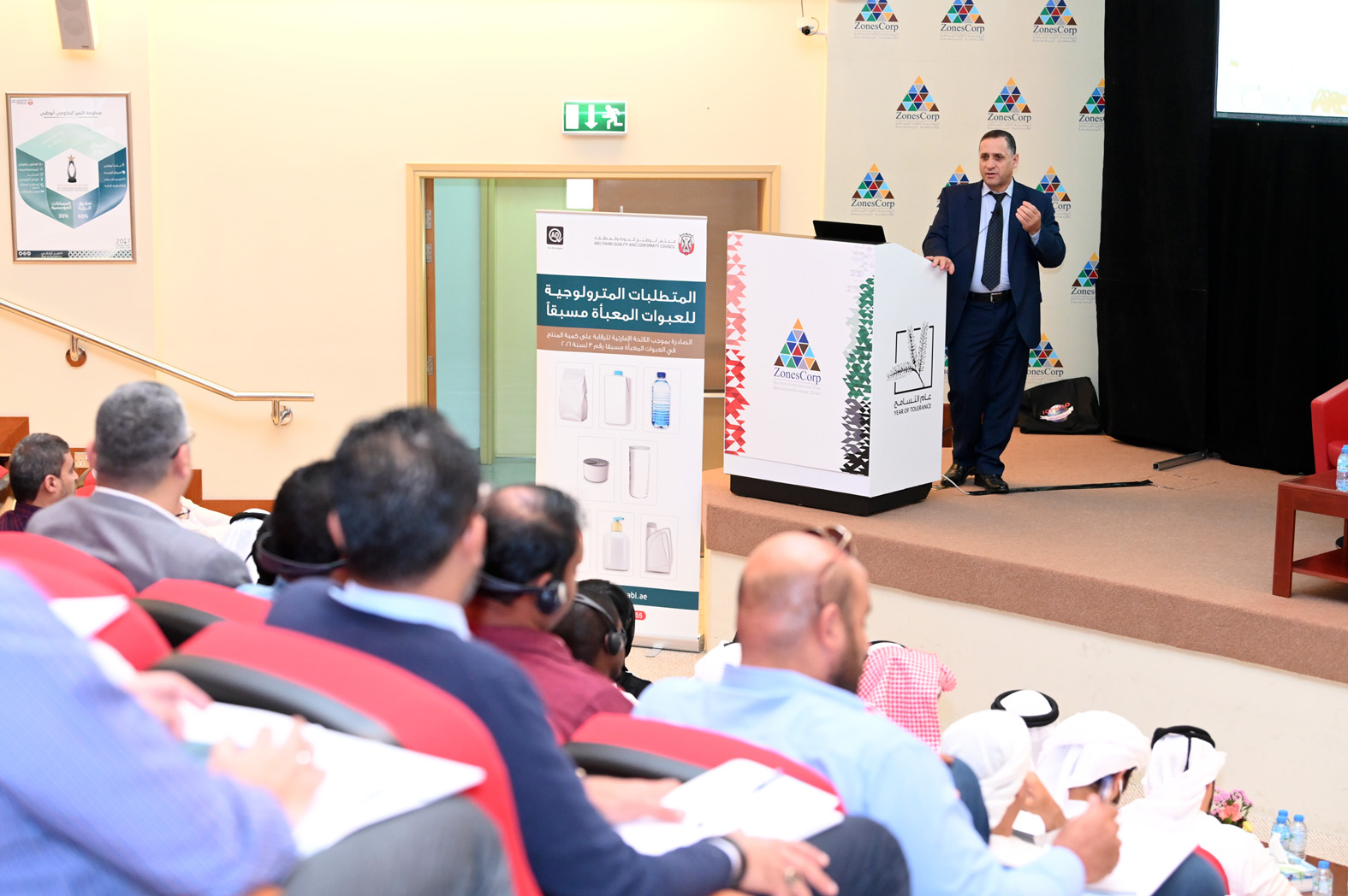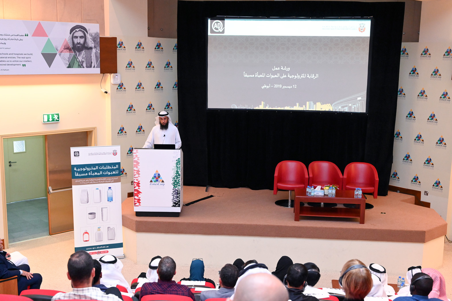 نظّم أبوظبي للجودة ورشة عمل عن الرقابة المترولوجية على العبوات المعبأة مسبقاً، سعياً منه للحفاظ على حقوق المستهلكين والمصنعين والمزودين والمستوردين على حد سواء، بالاضافة الى حماية اقتصاد امارة أبوظبي من خلال التأكد من عدم وجود عبوات معبأة مسبقاً مخالفة في الأسواق لا تلبي الاشتراطات الإلزامية الخاصة بها